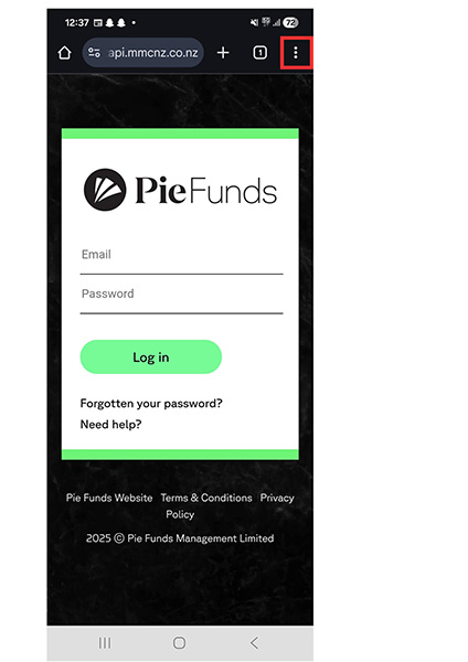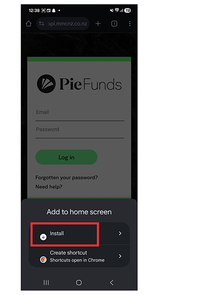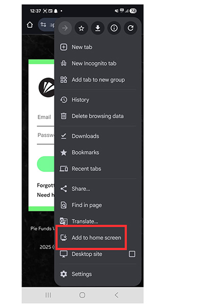 Add the Pie Investor Portal to your home screen in 6 easy steps if you are using an Android device.