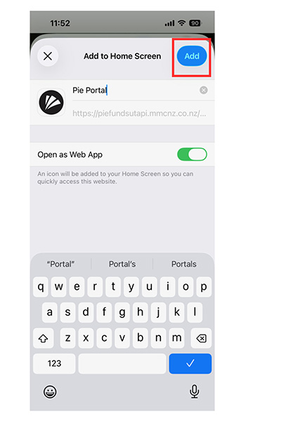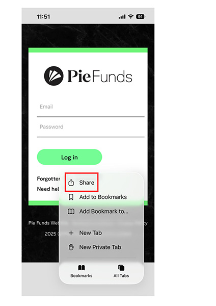 Add the Pie Investor Portal to your home screen in 6 easy steps if you are using an Apple device.